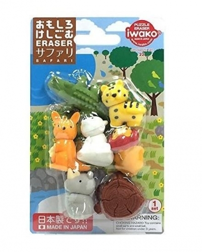 Zestaw gumek do ścierania, w kształcie zwierzątek Safari.