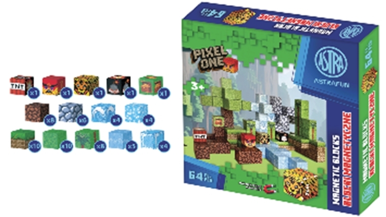 Zestaw klocków magnetycznych AstraFun Pixel One Dżungla - 64 szt.