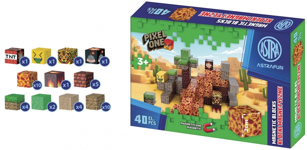 Zestaw klocków magnetycznych AstraFun Pixel One Lava - 40 szt.