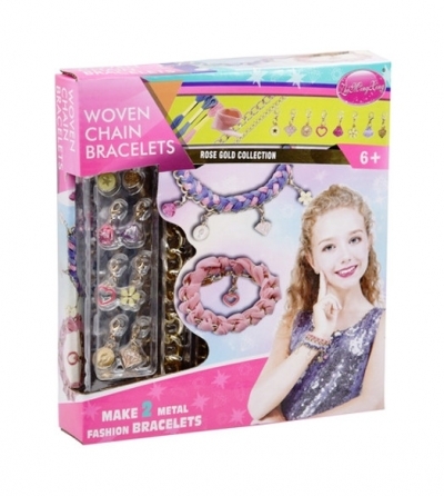 Zestaw do tworzenia bransoletek – zawiera elementy do wykonania 2 metalowych bransoletek z ozdobami. Zabawka przeznaczona dla dzieci od lat 6. Zapakowana w kartonowe pudełko. Podane wymiary są wymiarami opakowania.