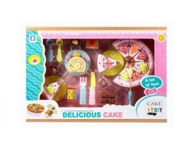 Tort podzielony na kawałki, świeczki z możliwością przymocowania do ciasta, łyżeczki i talerzyki - dzięki temu zestawowi zabawa w urodziny będzie jeszcze ciekawsza. Zabawki są wykonane z tworzywa wysokiej jakości, w pięknych, pastelowych kolorach i z dużą dbałością o szczegóły.