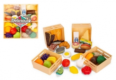 Zestaw produktów spożywczych. Komplet warzyw, owoców i innych produktów spożywczych. Zestaw zawiera 32 elementy. Zabawka przeznaczona dla dzieci od 3 lat. Podane wymiary są wymiarami opakowania.