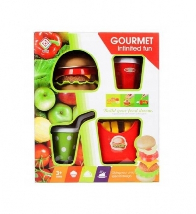 Zestaw zabawek imitujących żywność, urozmaici zabawę w dom lub w gotowanie.