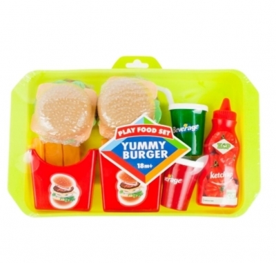 Wieloelementowy zestaw fast food z tacką.
