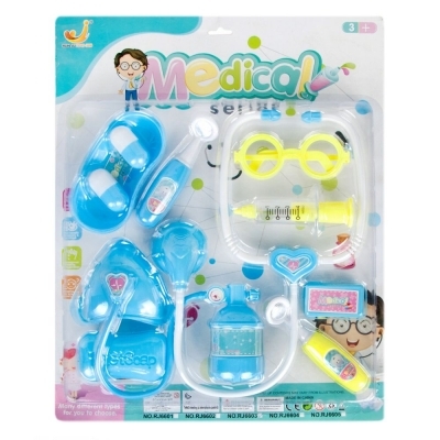 Zalety produktu: rozwijanie wyobraźni dziecka, nauka opieki nad chorym. MEGA CREATIVE przedstawia Zestaw Lekarski ze wszystkimi niezbędnymi przyrządami lekarskimi. Z tym zestawem, wszyscy pacjenci zostaną wyleczeni! Termometr i stetoskop świecą, do tego stetoskop posiada dźwięk bicia serca. Zawartość zestawu: stetoskop, termometr, strzykawka, okulary, nerka, plastry, lusterko dentystyczne, ciśnieniomierz. Wymiary/waga/baterie: wymiary produktu (dł. x wys. x gł.) [cm]: stetoskop-51x14, wymiary opakowania(dł. x wys. x gł.) [cm]: 34x42x6, waga produktu bez opakowania [kg]: 0,30 kg, waga produktu w opakowaniu [kg]: 0,37 kg, nie wymaga zasilania bateriami. Produkt przeznaczony dla dzieci w wieku: 3+.