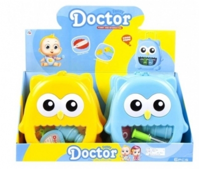 Wieloelemntowy zestaw lekarski dla najmłodszych w uroczej teczce w kształcie sowy.
