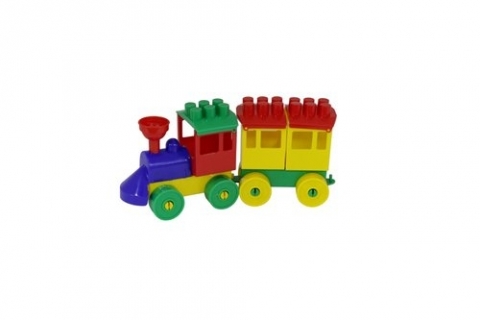 Lokomotywa z 1 wagonem składa się z mniejszych elementów. Są to klocki, koła, ściany i dach wagonów i lokomotywy. Konstruktor składa się z 18 elementów. Wiek 3+