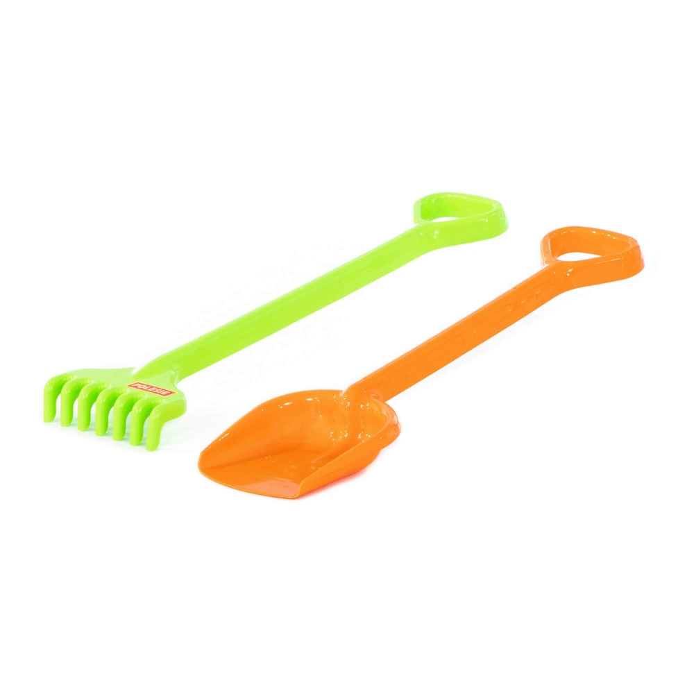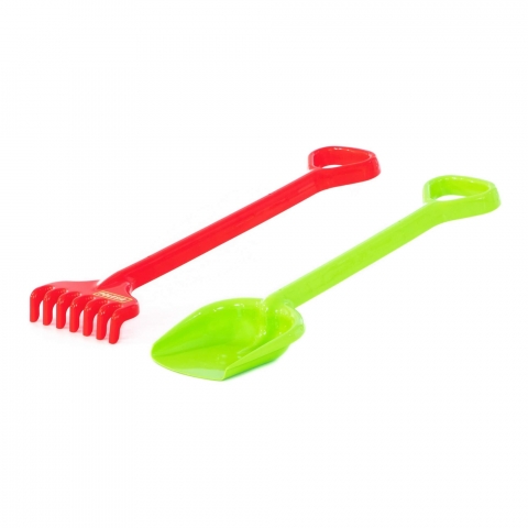 Zestaw z łopatką dużą i grabkami dużymi. Długość: ok. 50 cm.