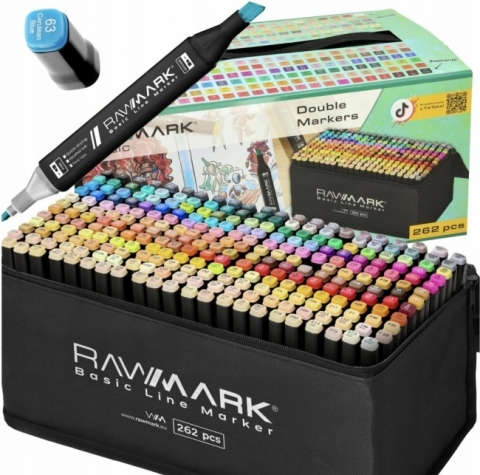 MARKERY ALKOHOLOWE 262 sztuk marki RAWMARK Nie przegap okazji i zamów już teraz zestaw 262 markerów alkoholowych w SUPER CENIE! Ten zestaw z pewnością urozmaici Twoją pracę i pozwoli na tworzenie niezwykłych dzieł sztuki ! ZALETY MARKERÓW DWIE KOŃCÓWKI RÓŻNORODNE KOLORY ORYGINALNE PUDEŁKO DOSKONAŁA PIGMENTACJA ( tusz super INK) WSPARCIE w social mediach (Instagram, Discord) Wysoka Pigmentacja i Specjalny Tusz super INK Markery alkoholowe w zestawie 262 sztuk wykorzystują technologię super INK, która zapewnia intensywną pigmentację i trwałe efekty. Z uwagi na mocne nasycenie tuszu, mogą one przebijać przez zwyczajny papier. Aby uniknąć tego efektu, zaleca się stosowanie specjalnego papieru przeznaczonego dla markerów alkoholowych, co zapewni optymalną jakość rysunków. Malowanie na Tkaninach i Ścianach Markery te są również przystosowane do malowania na ubraniach oraz ścianach, oferując kreatywne możliwości w dekoracji i personalizacji. Chociaż tusz może być trwały na tkaninach, nie gwarantujemy, że zostanie całkowicie usunięty podczas prania.