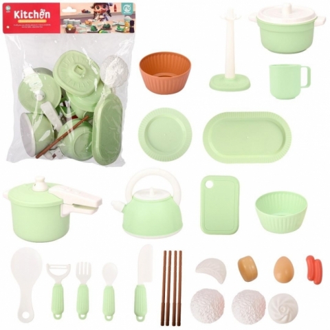 Zestaw Akcesoriów Kuchennych "Little Chef's Kitchen" - Zielony Serwis do Herbaty i Gotowania z Jedzeniem