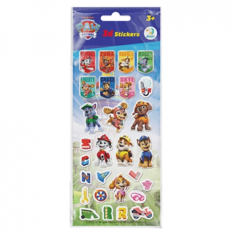 - Jeden arkusz z naklejkami 3D różnego rozmiaru z bohaterami „Psiego Patrolu”.