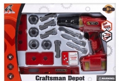 Multifunkcja wkrętarka z przystawkami zastąpi w skrzynce z narzędziami Twojego dziecka kilka różnych narzędzi. Idealne rozwiązanie aby zaoszczędzić miejsce i pieniądze! W skład zestawu wchodzi wkrętarka z efektami dźwiękowymi oraz ruchomymi, poziomica, dodatkowe wiertła, śrubki i nakrętki oraz deseczki różnej wielkości. Całość wykonana z plastiku. Przeznaczony dla dzieci w wieku: 3+. Wymaga zasilania bateriami 2 x AALR06 - nie załączone do zestawu.
