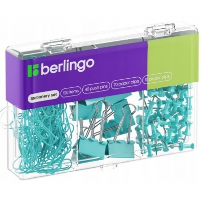 Zestaw niebieski: 70 spinaczy, 40 pinezek tablicowych, 10 klipsów