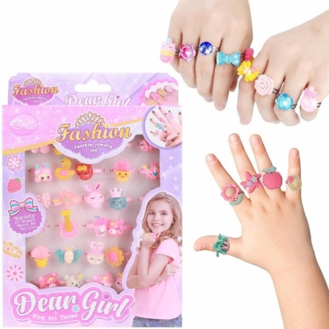 Zestaw 30 szt Pierścionków "Dear Girl" - Magiczny Świat Biżuterii dla Małych Dam! Przedstawiamy czarujący zestaw pierścionków "Dear Girl", który pozwoli każdej małej księżniczce wyrazić swój styl i stworzyć niezliczone, fantazyjne stylizacje! Ten wspaniały komplet to idealny prezent dla dziewczynek, które uwielbiają błyskotki i kreatywną zabawę. Cechy produktu: Bogactwo wzorów: Zestaw zawiera szeroką gamę uroczych pierścionków z różnorodnymi motywami - od słodkich owoców i zwierzątek, przez kwiatki i kokardki, aż po lśniące klejnoty i fantazyjne kształty. Każdy pierścionek jest unikatowy! Regulowany rozmiar: Pierścionki są zaprojektowane tak, aby pasowały na małe paluszki, z łatwą regulacją, co zapewnia komfort i swobodę noszenia dla dzieci w różnym wieku. Bezpieczne materiały: Wykonane z wysokiej jakości, bezpiecznych dla dzieci materiałów, trwałe i odporne na codzienne użytkowanie. Rozwój kreatywności: Zabawa pierścionkami stymuluje wyobraźnię, rozwija poczucie estetyki i pozwala na tworzenie własnych, unikalnych zestawów biżuterii. Idealne do odgrywania ról i kreatywnych zabaw. Idealny na prezent: Zestaw "Dear Girl" to fantastyczny upominek na urodziny, święta, Dzień Dziecka lub inną specjalną okazję. Z pewnością wywoła uśmiech na twarzy każdej dziewczynki! Wiek: Zalecany dla dzieci od 3 lat (na opakowaniu widnieje symbol 3+). Wielkość opakowania: 20x16x3 cm Pozwól swojej małej modnisi odkryć świat mody i biżuterii z naszym zestawem "Dear Girl"! To nie tylko zabawka, ale także inspiracja do wyrażania siebie i rozwijania artystycznych zdolności. Zamów już dziś i podaruj magiczną biżuterię swojej małej damie!