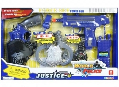 Stój, Policja! Razem z zestawem MEGA CREATIVE łap przestępców. Pokaż odznakę a w razie ucieczki wystrzel ostrzegawczo w niebo! W zestawie znajdują się: pistolet, rewolwer, gwizdek, odznaka, kabura, zegarek, krótkofalówka oraz kajdanki. Niektóre elementy posiadają efekty dźwiękowe - uruchamiane za pomocą nacisku na spust. Zabawki wykonane z plastiku.
