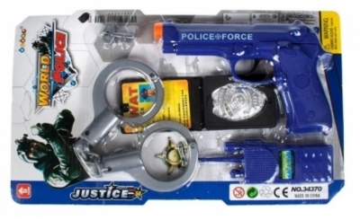 Z tym zestawem policyjnym złapiesz każdego przestępcę. W zestawie znajdują się pistolet, kajdanki, kluczyk, krótkofalówka oraz odznaka policyjna.