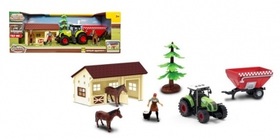 Zestaw rolniczy z traktorem ze światłem i dźwiękiem oraz stajnią