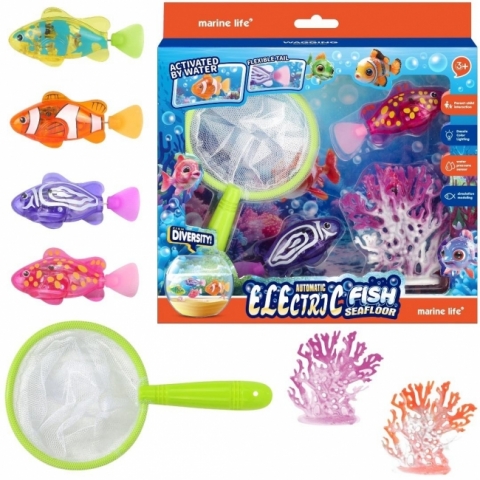Zestaw "ELECTRIC FISH SEAFLOOR" zamieni każdą kąpiel w morską lagunę! Obserwowanie pływających, świecących rybek jest fascynujące i zachęca dzieci do spędzania czasu w wodzie. Łapanie rybek podbierakiem to wesołe ćwiczenie zręczności, a realistyczne ruchy i kolory pobudzają wyobraźnię i ciekawość.