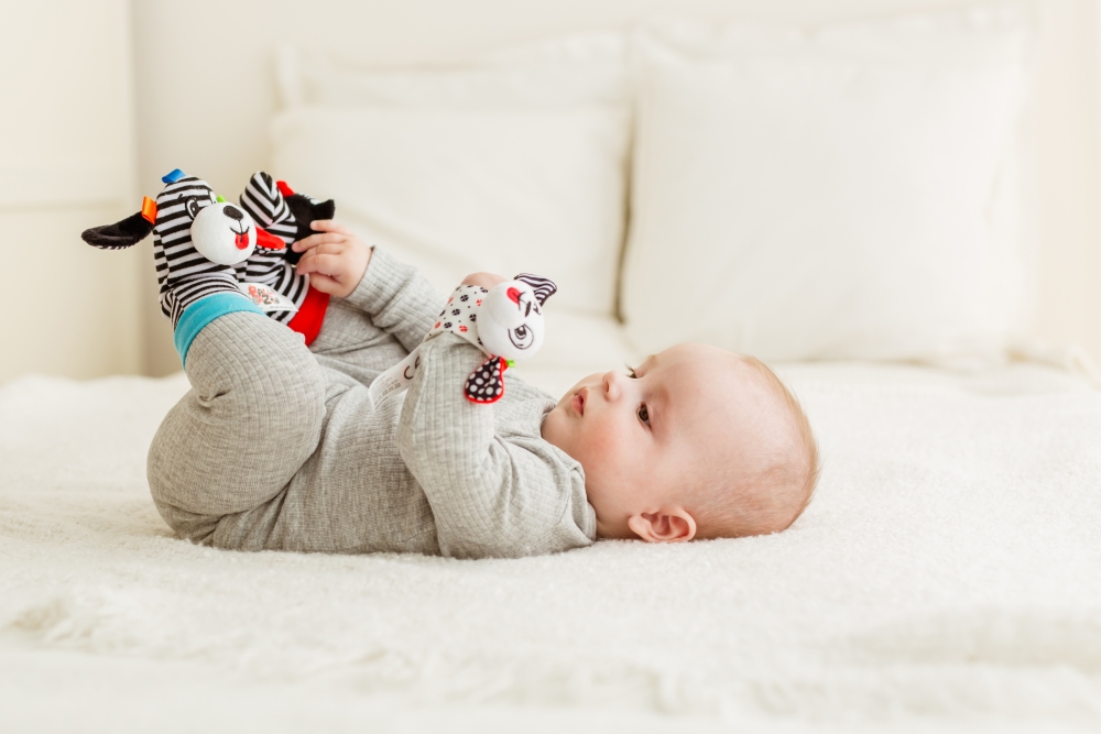 Grzechotanie na całego z parą obłędnie słodziutkich bransoletek! Obie grzechotki zapinane są na rzep, więc bez trudu można je zakładać i zdejmować z dziecięcych rączek. Jedną bransoletkę zdobi koala, a drugą szop, a z tego uroczego duetu można korzystać równocześnie lub oddzielnie, wybierając tę grzechotkę, którą w danym momencie maluszek interesuje się bardziej. Przy główkach zwierzaków znajdują się materiałowe mini metki, które stymulować będą zmysł dotyku bobasa, zachęcając go tym samym do sensorycznego odkrywania świata.