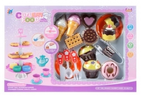 Twoje dziecko najlepiej uczy się poprzez zabawę. Zachęcając je do niej, przyczyniasz się do rozwoju jego kreatywności, zmysłów i zdolności poznawczych. Zestaw słodkości MEGA CREATIVE będzie doskonałym uzupełnieniem każdej dziecięcej kuchni czy sklepu! W zestawie znajdują się różne rodzaje lodów, ciasteczek i donutów oraz patera, sztućce i akcesoria kuchenne. Całość wykonana z plastiku. Produkt przeznaczony dla dzieci w wieku: 3+. Wymiary opakowania(dł. x wys. x gł.) [cm]: 48x32x7.