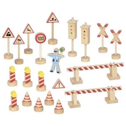 21 drewnianych elementów, w tym figurka policjanta Ole, to doskonałe wprowadzenie w świat ruchu drogowego. Dzieci mogą ustawiać znaki i odgrywać różne scenariusze, ucząc się zasad bezpieczeństwa oraz rozwijając wyobraźnię.