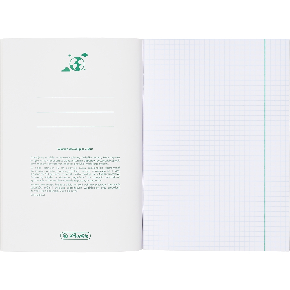 Zeszyty przedmiotowe Herlitz Eco PP to idealne rozwiązanie dla uczniów, którzy chcą łączyć funkcjonalność z dbałością o środowisko. Ich wyjątkowa konstrukcja opiera się na dwuwarstwowej okładce – zewnętrznej, wykonanej z mlecznego polipropylenu, oraz wewnętrznej, z zadrukowaną grafiką przedmiotową. Co ważne, aż 30% materiału pochodzi z przetworzonych odpadów pokonsumenckich, takich jak sieci rybackie, liny i włókna morskie wyłowione z oceanów. Okładka jest wodoodporna i trwała, dzięki czemu nie wymaga dodatkowych osłon – skutecznie chroni zawartość zeszytu nawet przy intensywnym użytkowaniu. Niebieska liniatura z zielonym marginesem doskonale wpisuje się w ekologiczny styl kolekcji, a na stronie tytułowej znajduje się adresówka do podpisania, natomiast wewnątrz – ściągi z wybranego przedmiotu.