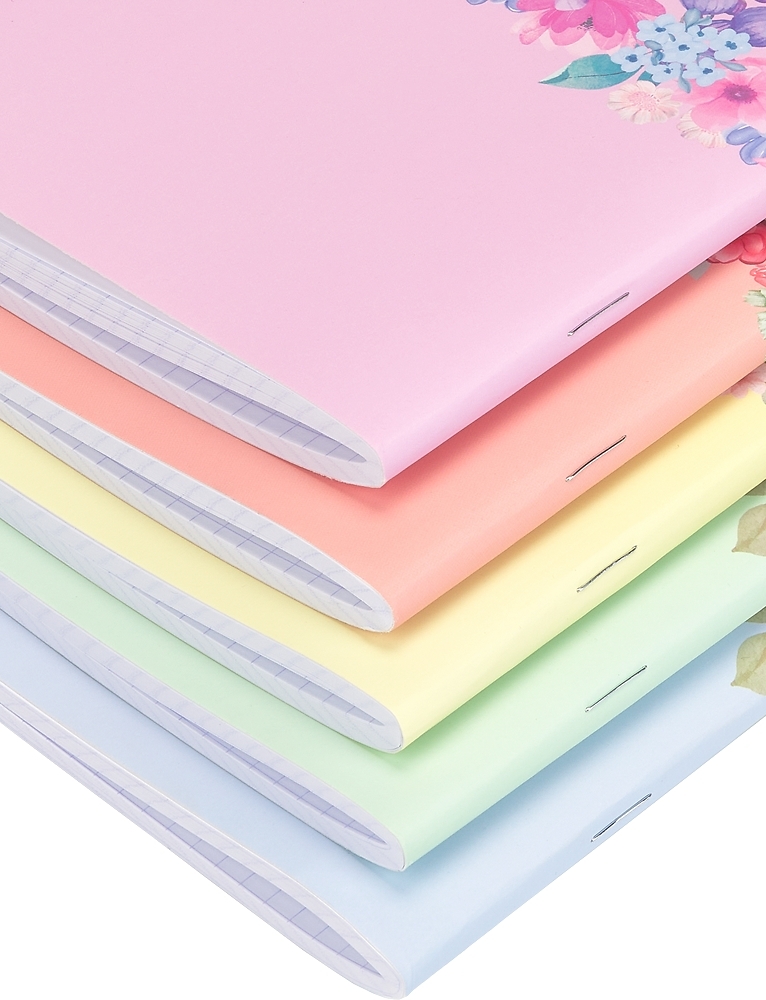 - Akwarelowe kwiaty na okładkach nadają zeszytom subtelnej elegancji