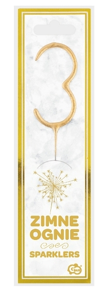 Zimne ognie w kształcie cyfry 3 to połączenie zimnych ogni i świeczek na tort w jednym. Wyjątkowa ozdoba na tort, która efektownie się pali, a przy tym jest bezpieczna dla otoczenia. Możesz łączyć ze sobą cyfry, aby uzyskać inne liczby. Zimne ognie cyfry na tort to wyjątkowa dekoracja na różne okazje: urodziny, ślub, wesele, rocznicę, czy sylwestra. Opakowanie zawiera jedną sztukę.