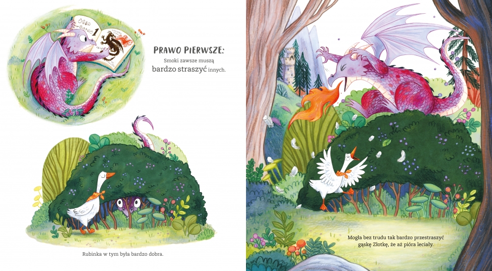 Mała smoczyca Rubinka tak bardzo chciała być dobrym smokiem, że z zapałem wypełniała zalecenia zapisane w „Księdze Praw Smoków”. Dlatego nie dzieliła się z nikim i gromadziła wszystko dla siebie. Ale czuła się bardzo samotna.