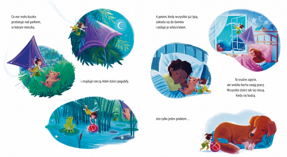 Co noc mała duszka przelatuje nad parkiem, w którym mieszka, i znajduje pogubione rzeczy. A kiedy dzieci już śpią, ukradkiem kładzie im je na poduszkach. Aż pewnego dnia odbiera Sroce Złodziejce maleńką bransoletkę. Jest taka piękna i tak błyszczy… Znajduszka jest zachwycona. Tak chciałaby ją mieć. No, ale przecież jest dobrą duszką… Co teraz zrobi?
