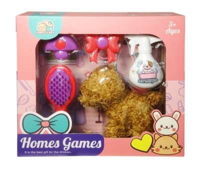Sympatyczny piesek z akcesoriami do pielęgnacji np. szmponem, szczotką oraz gumkami. Zabawka dla dzieci od 3 lat. Produkt zapakowany w kartonowe opakowanie z okienkiem. Podane wymiary są wymiarami opakowania.