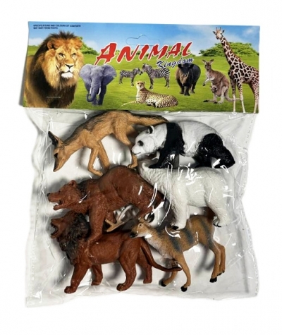 Zestaw figurek przedstawiających dzikie zwierzęta, takie jak lew, niedźwiedź, panda, wilk, jeleń i inne. Idealny do zabawy w safari oraz nauki rozpoznawania gatunków.