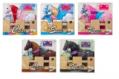 Figurka konia z dodatkowymi akcesoriami do zabawy. Koń posiada siodło oraz uprząż, a w zestawie znajduje się również grzebień do czesania grzywy. Zabawka umożliwia odgrywanie scen związanych z opieką nad koniem. Produkt występuje w kilku wersjach kolorystycznych, wybierany losowo. Cena dotyczy jednej sztuki. Zabawka przeznaczona dla dzieci od 3 lat. Produkt zapakowany w kartonowe opakowanie. Podane wymiary są wymiarami opakowania.